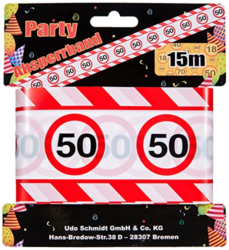 Details: 1 DEKOBAND ABSPERRBAND Geburtstag Zahl 50 DEKO 15m Kunststoff