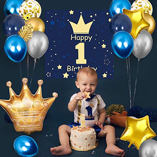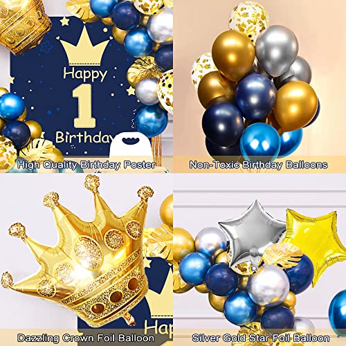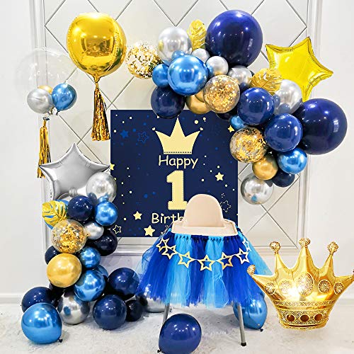 💎【Luxuriöses 1. Geburtstag Party Luftballon Junge】 – Suchen Sie noch ein geburtstagsballon set für Junge? Bitte wählen Sie unser blau gold themen ballon kit, das ist eine Kombination aus luxuriösem gold und atmosphärischem blau, hochwertiges Geburtstags-Hintergrundposter, plus eine schillernde Krone, goldener Regenvorhang, Sternfolienballon und goldene Schildkrötenblätter, machen die Geburtstagsfeier zu einem neuen aussehen!