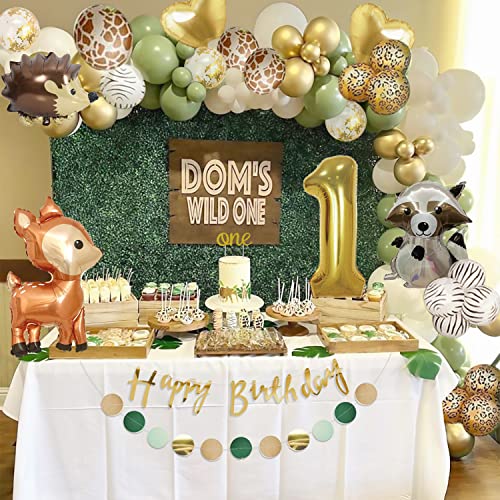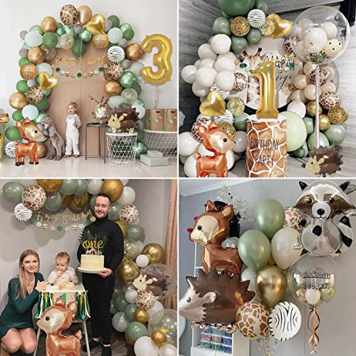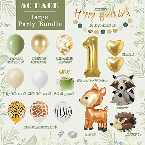 Geburtstagsdeko 1 Jahr – Inklusive 45 Stück Latexballons,Nummer „“1″“ Folienballon, 2 Stück Herzballons, 3 Stück Sternballons, 1 Stück Geburtstagsbanner, 1 Stück Papiergirlande mit grünen Punkten, 1 Stück Kuchendeckel, 3 Tierfolienballons, Ballonband,Bogenband.