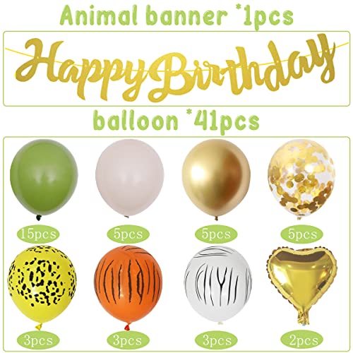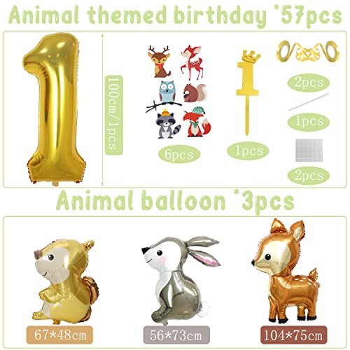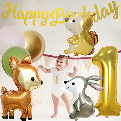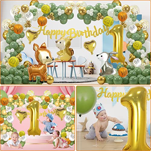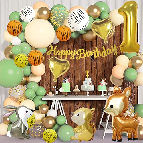 【Jungle Animal Theme】 Kombination aus wunderschönen Tierballons (Hirsch, Eichhörnchen, Kaninchen), Happy Birthday-Banner, grünen Ballons, gemusterten Ballons schmücken den ganzen Raum und schaffen eine wilde Dschungelatmosphäre. Das Thema Dschungeltiere ist universell , Ideal für die Geburtstagsfeier eines 1-Jährigen