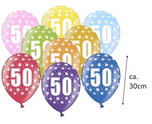 🎈LIEFERUMFANG Set 10er kunterbunte Luftballons 50 in 6-bis-8 Farben, für Männer und Frauen geeignet. Hergestellt in der EU. 🎉💡PERFEKT KOMBINIERBAR mit Folienballon 50, Kerze 50, Geschirr 50, Girlande Geburtstag für eine festliche Dekoration zum Geburtstag 50 Jahre