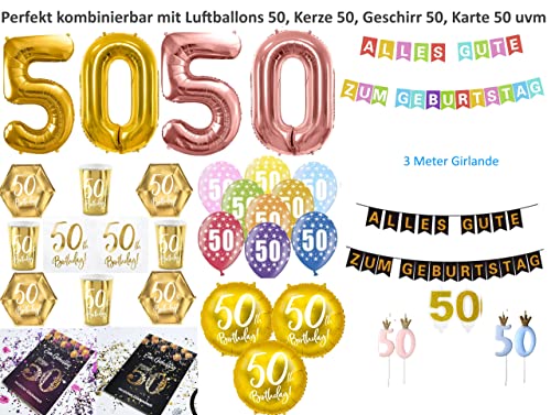 🎉💡PERFEKT KOMBINIERBAR mit Folienballon 50, Kerze 50, Geschirr 50, Girlande Geburtstag für eine festliche Dekoration zum Geburtstag 50 Jahre