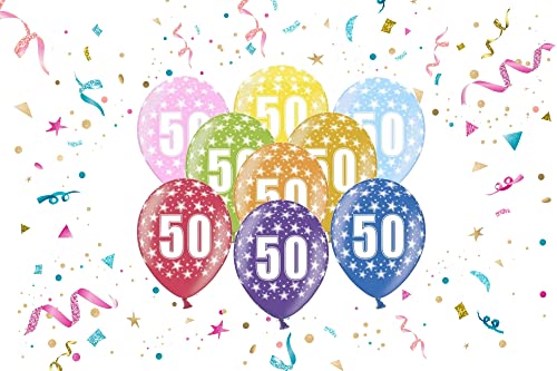 🎈KUNTERBUNTE 10er Pack Luftballons 50. Geburtstag Deko Ballon Zahl 50 Deko für 50. Geburtstag, Jubiläum 50 Jahre oder Goldhochzeit Geburtstag 50 Ballon Zahl 50