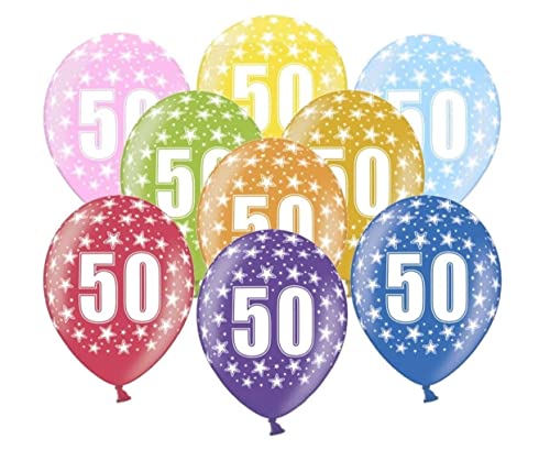🎈 BLICKFANG Die farbigen Luftballons 50 Metallic Farben Ballon aus Naturkautschuklatex sind rundherum mit Sternen und Geburtstagszahl 50 bedruckt, werden zu echten Hingucker in jeder Jubiläum Party und Geburtstagsfeier 50