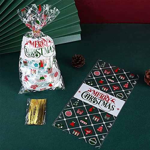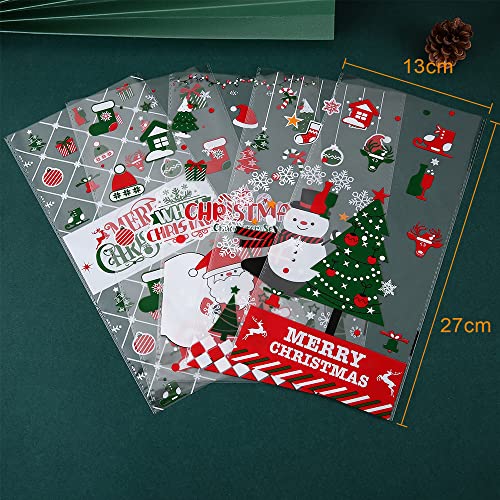 🎁 100er-Packung mit verschiedenen gemusterten Süßigkeitentüten: Sie erhalten ein Paket mit 100 weihnachtlichen Zellophan-Partytüten und 100 Krawatten, sie sind in verschiedenen Stilen erhältlich, perfekt für Ihre Weihnachtsdekoration; Sie können sie auch mit anderen teilen.