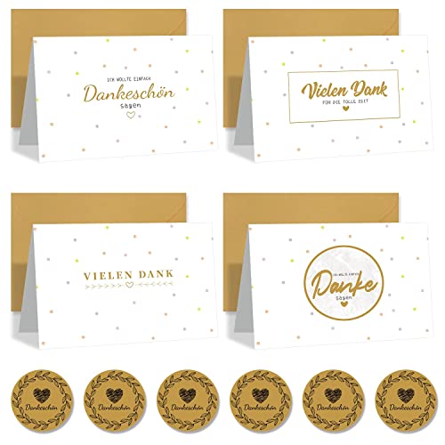 Details: 12 Danke Karten Bunte 4 Designs Grußkarte Innen Leere Dankeschön Karte Dankeskarten mit Umschlägen und Aufkleber Set…