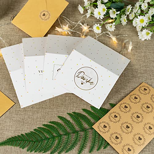 Danke Karten Set: Enthält alles, was Sie brauchen , unser Dankeskarten-Set enthält 12 klappkarten , 12 passende umschlag, 15 aufkleber zum sichern der klappe,sind in edlen Kraftpapierschachteln verpackt.