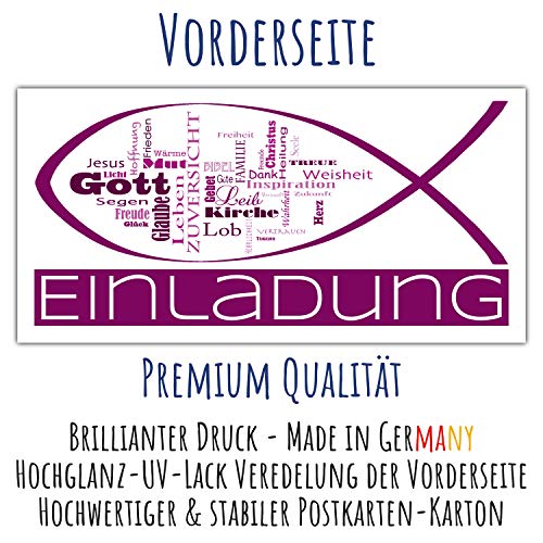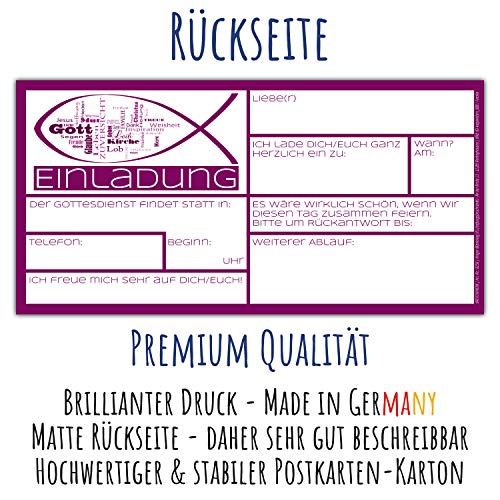 Details: 15 WORTWOLKE Einladungskarten mit Umschlag zur Kommunion Konfirmation Taufe zum Ausfüllen in Violett für Mädchen Jungen…