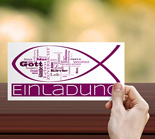 CHRISTLICHE WORTE – Die liebevoll mit Fisch (Ichthys) und Wortwolke gestalteten Kommunionskarten / Konfirmationskarten sind ideal für Feierlichkeiten wie Erstkommunion, Konfirmation, Firmung, Taufe.