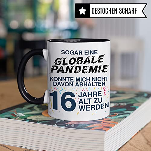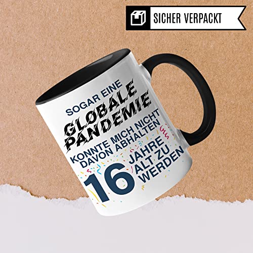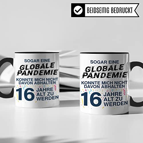 SOGAR EINE GLOBALE PANDEMIE KONNTE MICH NICHT DAVON ABHALTEN 16 JAHRE ALT ZU WERDEN! Lustige Tasse aus weißem Keramik mit coolem Spruch als Geschenk 16. Geburtstag Sohn. Für jeden Jungen, der im Chaos-Jahr 2022 16 Jahre alt wird. Schöne 16 Geburtstag Geschenkidee. Garantiert spülmaschinenfester Aufdruck – mit hochwertiger Sublimationstechnik bedruckt und deshalb besonders robust. Alle unsere Tassen werden zu 100% in Deutschland, zu fairen Bedingungen und mit Liebe bedruckt. Das ideale Geschenk, egal ob die Tasse als Kakaobecher, Kaffeetasse oder Kaffeebecher genutzt wird.