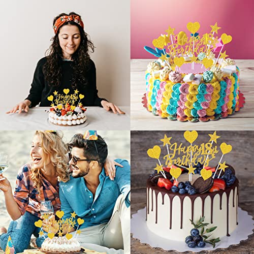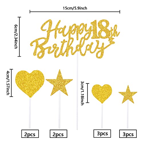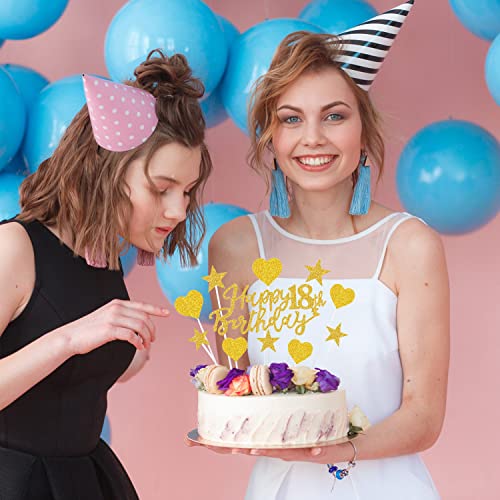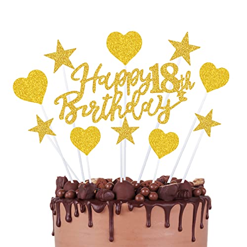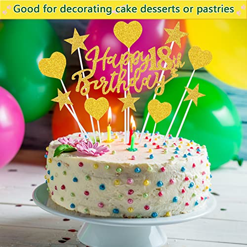 ✅Gold Happy Birthday Tortendeko 18 Geburstagdeko: 1* Happy 18th Birthday Topper + 5* Sternen Topper + 5* Herze Topper. Die Sterne sind dekorative Picks für Snacks und Süßes sind sie tolle kleine Highlights!