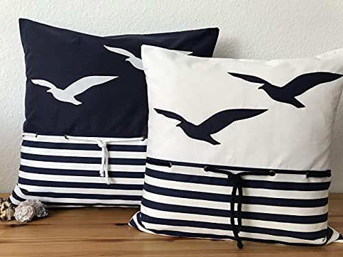 Details: 1x Maritime Kissenhülle, Kissenbezug, Landhausstil Kissen, Dekokissen Möwen weiß