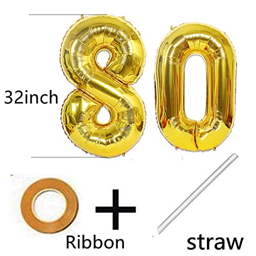 Details: 2 Luftballons Zahl 80 gold + Happy Birthday Girlande + gold banner Folienballon 80.Geburtstags deko Männer frauen 80…