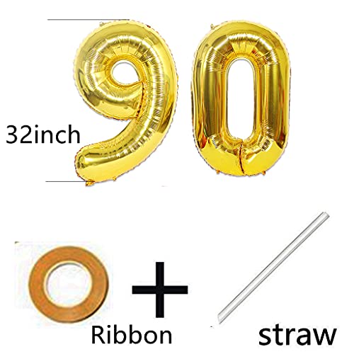Details: 2 Luftballons Zahl 90 gold + Happy Birthday Girlande + gold banner Folienballon 90.Geburtstags deko Männer frauen 90…