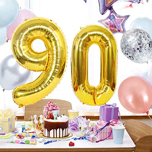 Details: 2 Luftballons Zahl 90 Gold, Ouceanwin Riesen Folienballon Nummer 90 XXL Helium Ballons Aufblasbar in 40″, Zahlenballon 90 Gold für Geburtstag, Hochzeit, Jubiläum Party Dekoration (100cm)