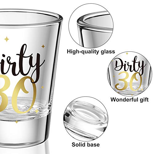 Lieferumfang: Sie erhalten 2 Stück 30-ml-Schnapsgläser, die mit Schaumstoff verpackt sind, um vor Bruch während des Transports zu schützen, schön und edel für 30 Jahre alte Geburtstagsparty-Zubehör