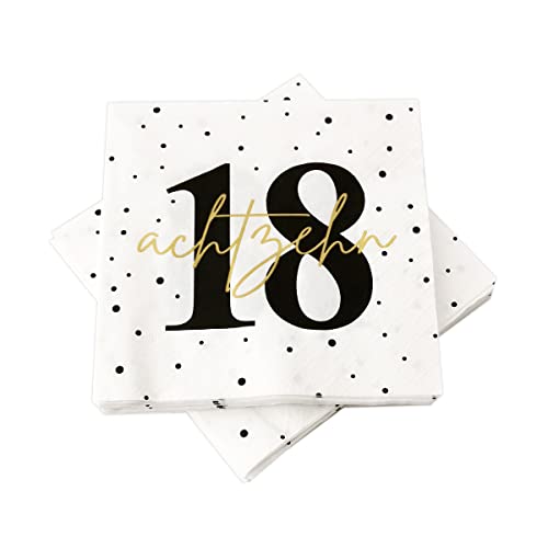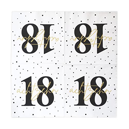 Details: 20 Servietten zum 18. Geburtstag 33×33 cm – weiß schwarz gold