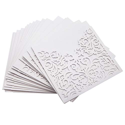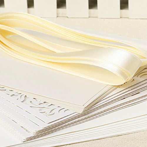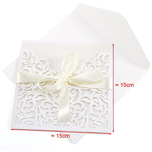 Details: 20er Ivory Weiss Einladungskarten Elegant Spitze Design mit Karten, Umschläge, Schleifer, Einlegeblätter OHNE DRUCK…