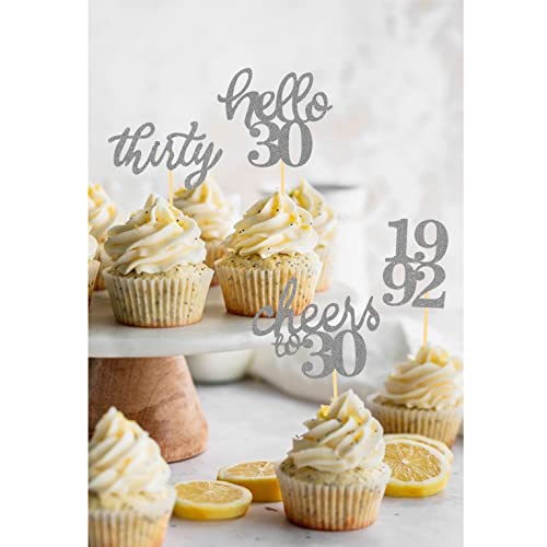 【Lieferumfang】 24 Stück Cupcake Toppers in 4 verschiedenen Stilen, einschließlich „cheers to 30“, „1992“, „hello 30“ und „thirty“. Sie können mit verschiedenen Arten von Cupcake kombiniert werden, um Ihre Torte noch attraktiver zu machen.