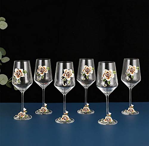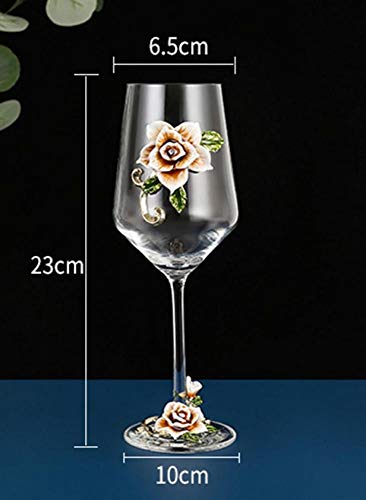 Details: 350ML Kristall Weinglas, Elegant Handgemachte Bemalt Emaille Blume Gin Ballon Glas Weinglas Bleifrei Premium Kristall…