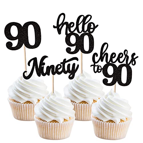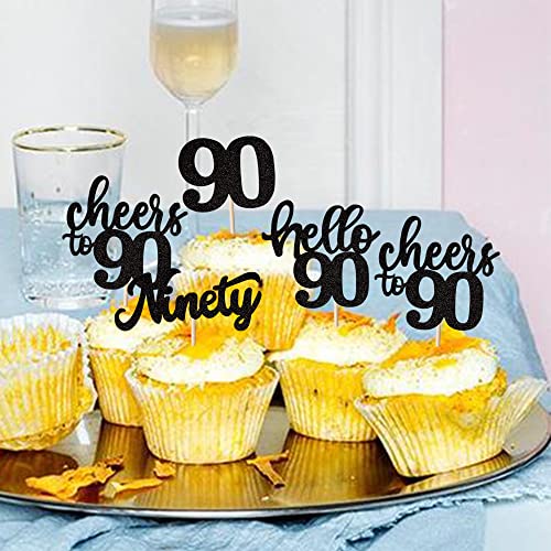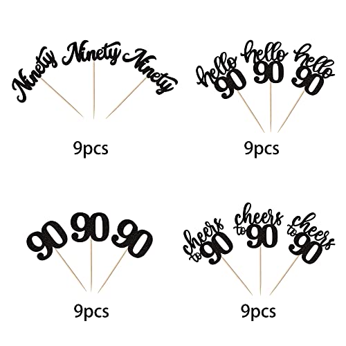 Details: 36 Stück 90th Birthday Cupcake Toppers Glitter Hallo 90 Geburtstag Tortendeko Cheers to 90 Ninety Muffin Dekoration for…