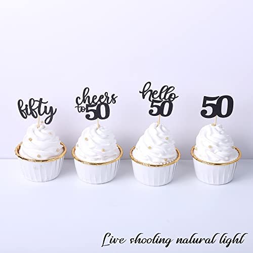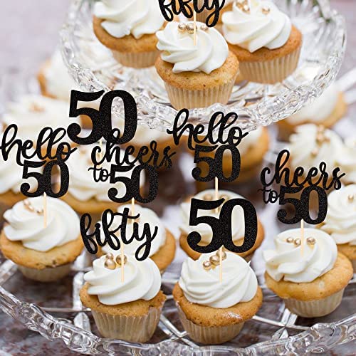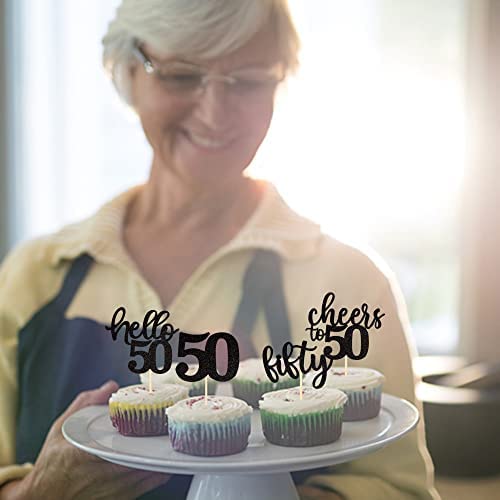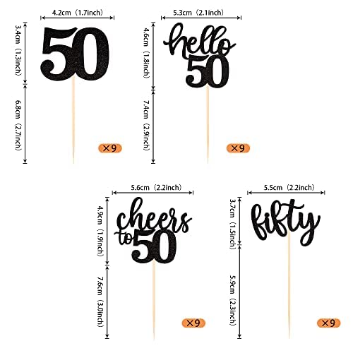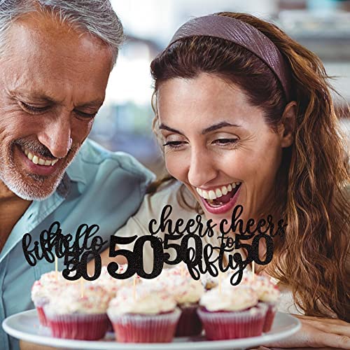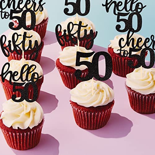 Details: 36 Stück 50th Birthday Cupcake Toppers Glitter Hallo 50 Geburtstag Tortendeko Cheers to 50 Fifty Muffin Dekoration for…
