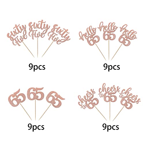 Details: 36 Stück 65th Birthday Cupcake Toppers Glitter Hallo 65 Geburtstag Tortendeko Cheers to 65 Sixty-five Muffin Dekoration…