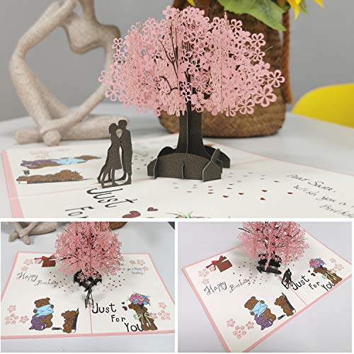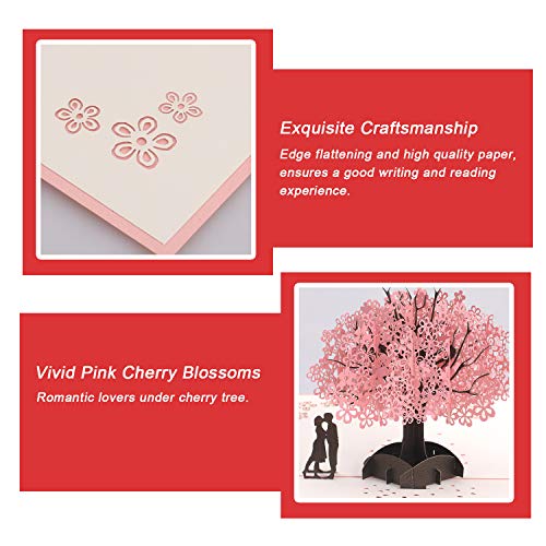 【3D Pop-up Romantisches Design】Die Größe der Valentinstagskarte für Freundin: 15.5 x 21 cm. Öffnen Sie diese valentinstag karte Sanft , Dann blühen die wunderschönen rosa Kirschblüten und das Paar oder die Liebenden erscheinen plötzlich. Verglichen mit der normalen Karte ist diese Jubiläumskarte stereoskopischer und lebendiger.
