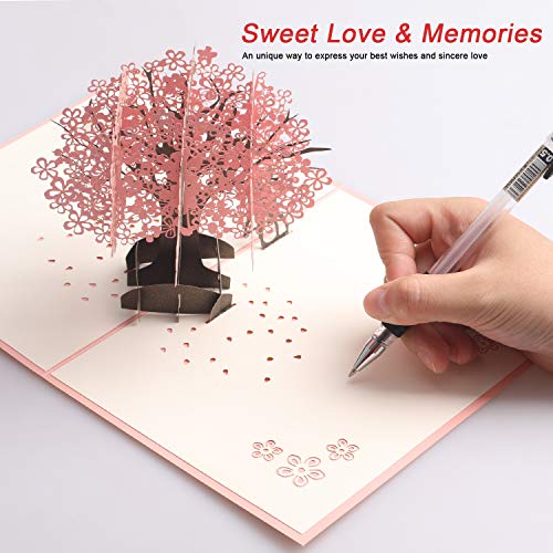 Details: 3D Hochzeitskarte, Pop Up 3D Hochzeitsgeschenk mit Umschlag, Geburtstagskarte Rosa Kirschblüte Valentinstag Karte, Karte…