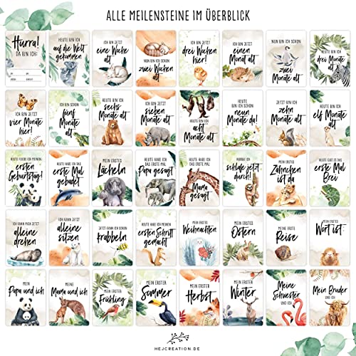 VIELFÄLTIG UND ABWECHSLUNGSREICH ♡ Jede Karte wurde individuell mit wunderschönen Tiermotiven, passend zum jeweiligen Meilenstein, gestaltet und ist für Mädchen und Jungs gleichermaßen geeignet.