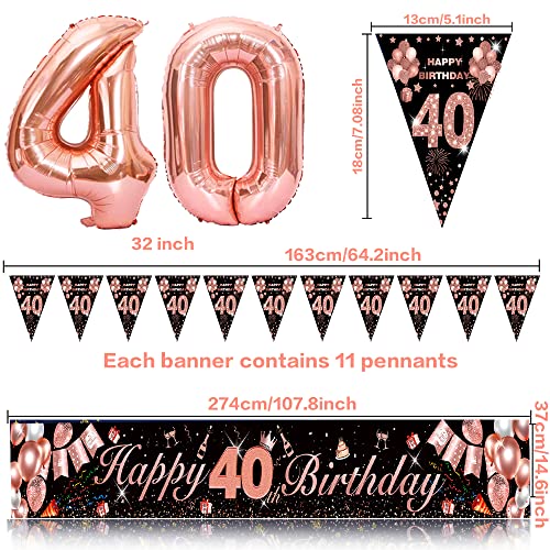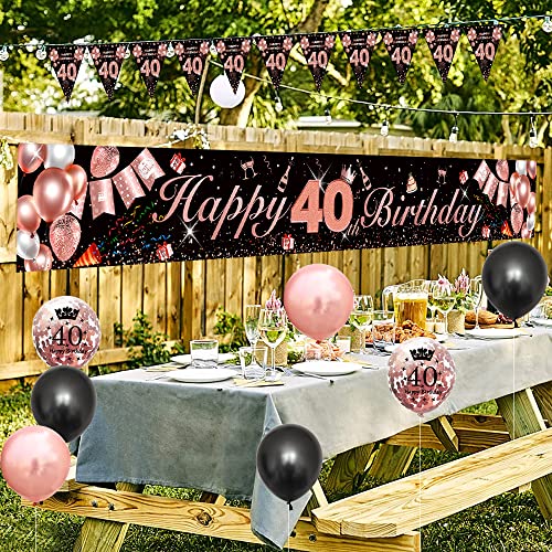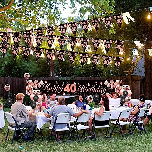 ✨ 【40 GEBURTSTAG DEKO KITS】- Enthalten 1 stück brillante Schwarz RoseGold Banner, 32 zoll folienballon number 40, 11 stück rosegold wimpel 18*13cm, 6 stück rosegold luftballons 12 zoll, 6 stück schwarz luftballons and 6 stück rosegold konfetti luftballons 12 zoll, ein 13 fuß seil und unser freundlicher Kundendienst.(banner größe: 274*37cm / 9*1.21 Füße.)