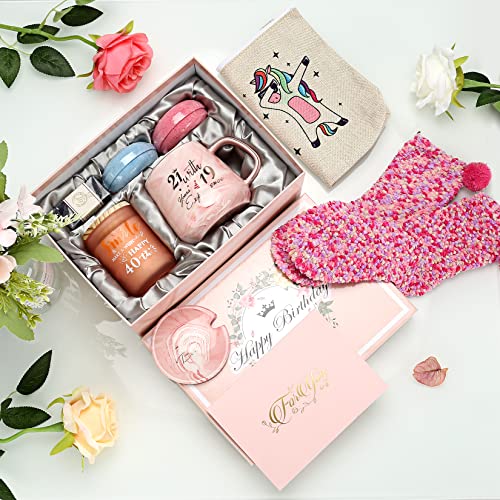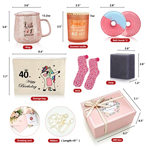 【❤️ Badeset Entspannungsgeschenk für Frauen】 Möchten Sie ein einzigartiges Geschenk zum 40. Geburtstag für Frauen, das aussieht, riecht und sich anfühlt wie LUXURY? Diese Geschenkbox zum Verwöhnen zum 40. Geburtstag ist ein perfektes Geburtstagsgeschenk für sie oder den 40. Geburtstag einer Frau. Das enthält: 1× 13 Unzen Kaffeetasse,1× 7 Unzen Lavendelduftkerze, 1× Make-up-Tasche, 2× Badebombe (Lavendel & Rosenduft), 1× Seife (Lavendel), 2× Socken, 1x Geschenkbox, 1x Schleife und 1 x Grußkarte.