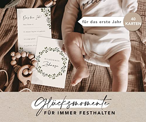 TOLLE ERINNERUNG: Begleitet das erste Lebensjahr Eures Babys mit der Kamera und schafft mit unseren 40 „mein erstes Jahr“ Meilensteinkarten wunderschöne Andenken für euer Baby Fotoalbum.