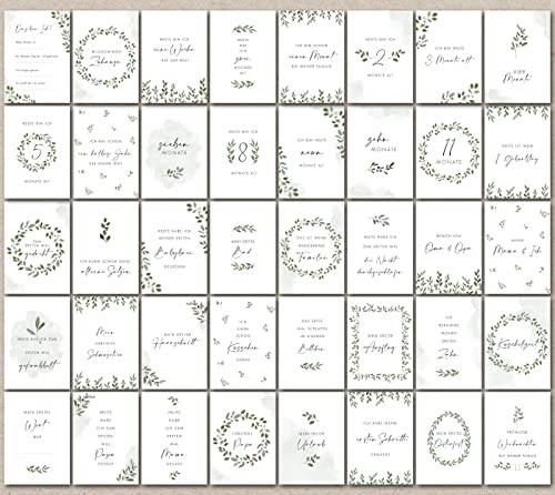 EINZIGARTIGES DESIGN: Unsere liebevoll gestalteten Baby Monatskarten mit schlichten Olivezweigmotiven im Greenery-Stil sind geschlechtsneutral und eignen sich somit perfekt für Mädchen und Jungen.