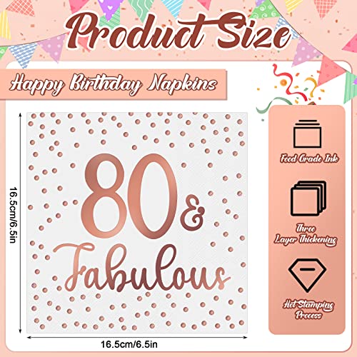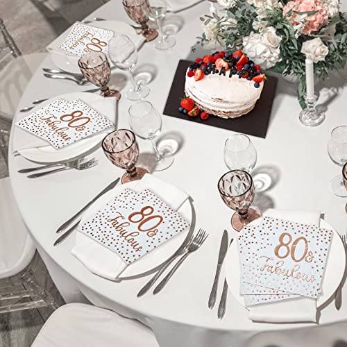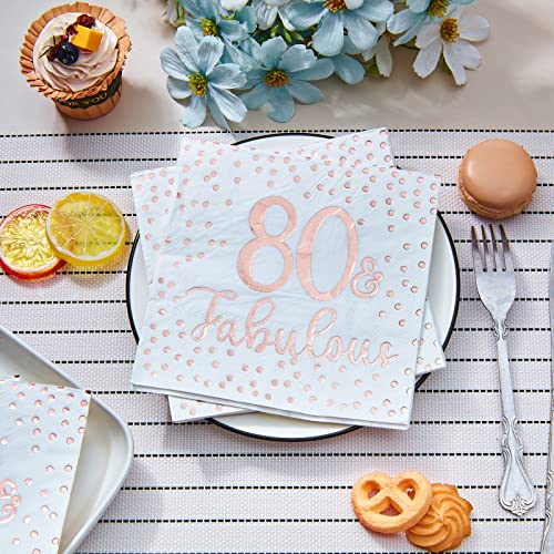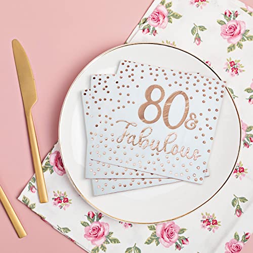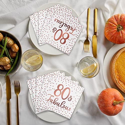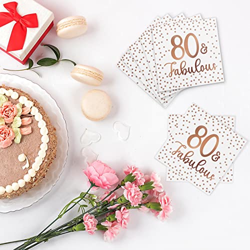 Roségold Stempeldesign: Diese Cocktail Servietten verwenden einen Roségold Stempelprozess, wodurch sie unter dem Licht glänzend und charmant werden. Der Druck [80 and fabulous] passt gut zu Ihrem Partythema zum 80. Geburtstag