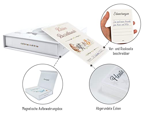 ✔ Das MEILENSTEINKARTEN-SET besteht aus 45 Karten im DIN A6 Format und einer Premium Aufbewahrungsbox, die sich magnetisch öffnet und schließt. Auf der Vorderseite befindet sich immer ein wichtiger Meilenstein mit einem passenden Motiv und auf der Rückseite genügend Platz um Erinnerungen aufzuschreiben.