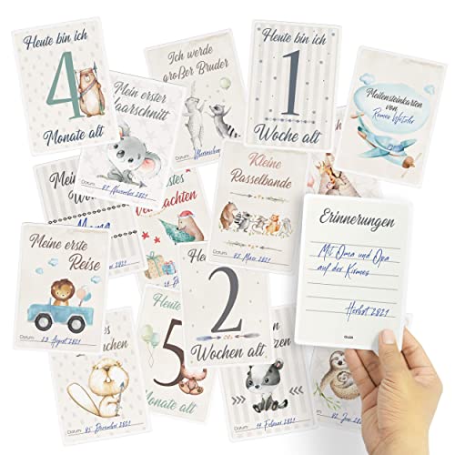 OLGS Baby Meilensteinkarten Junge | 45 Meilenstein Karten für Kinder, ideal als Geschenk zur Geburt, Schwangerschaft…