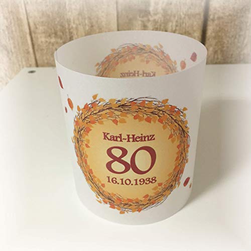 Details: 4er Set Tischlicht Tischlichter Kranz Blätter runder Geburtstag 40 50 60 70 80 90 Tischdeko personalisierbar dunkelrot…