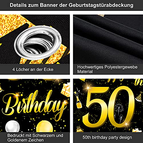 【Viele Anwendungsszenarien】Die Türverkleidungsdekoration zum 50. Geburtstag mit schwarzem und gold Design sind perfekt für Männer und Frauen, kann als Türbanner, Wandtapete, Geburtstagsparty, Fotorequisite, Videokulissen, etc. verwendet werden. Einfach im Innen- oder Außenbereich zu hängen, erhöhen mehr Atmosphäre der Geburtstagsparty. Sie müssen sie nur aufhängen, wo immer Sie dekorieren möchten.