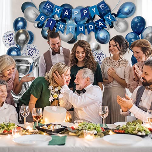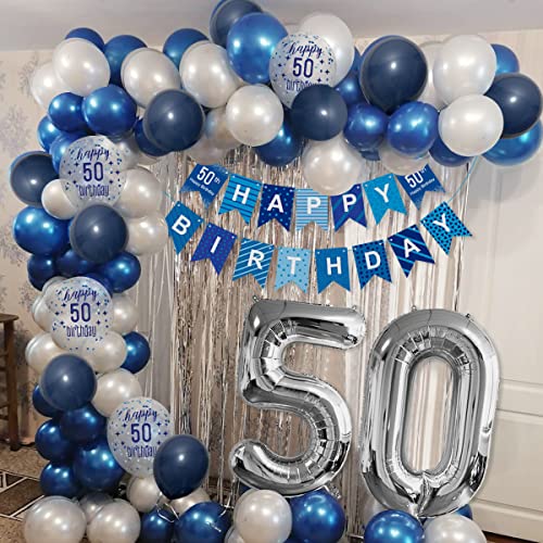 50. Geburtstag Deko, Luftballons 50.Geburtstag Männer mit Blau Silber Luftballons 50. Happy Birthday Banner…