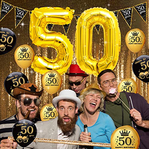 🎈 20 DRUCK BALLONS + FOLIEN BALLONS: 10 Stück Goldballons zum 50. Geburtstag, 10 Stück Prost auf 50 Jahre schwarze Konfetti Luftballons, 40 Zoll Goldfolienballons Nummer 50 für schillernde Luftballons, die begeistern!