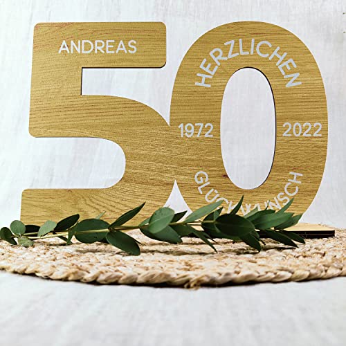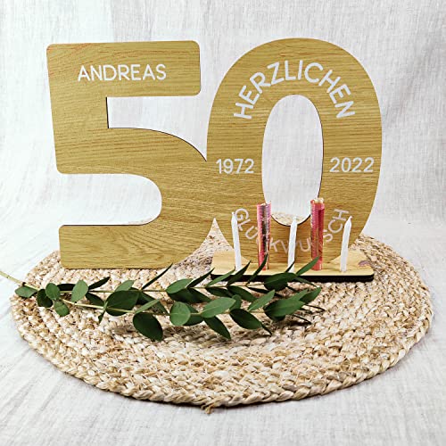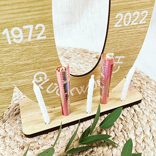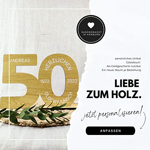 HOCHWERTIG: Die XL Holzzahl ist ca. 29x21cm mit insg. 5 Löchern für Geldscheine und/oder Kerzen. Keine Massenware! Wir fertigen all unsere Produkte für Sie individuell mit viel Hingabe in unserer Manufaktur in Hamburg