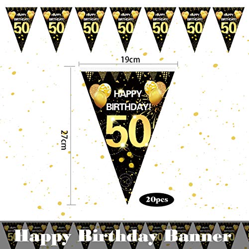 💙 50.Geburtstag Schwarz Gold Wimpel: Wimpel 27 cm x 19 cm. Wimpel girlande Es gibt 20 Wimpels, Wimpelkette gesamtlänge 5.5 m.