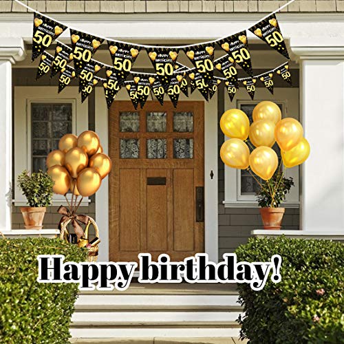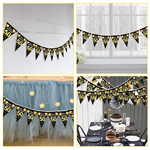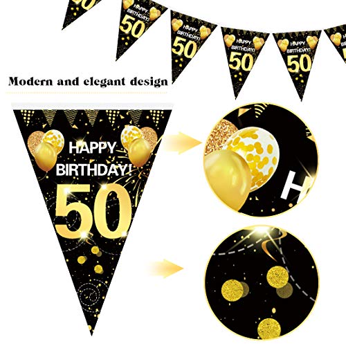 💘 Einfach zu dekorieren: Das schwarz gold Girlande Wimpel mit Kordel kann problemlos als Willkommensschild für die Dekoration von 50.Geburtstagsfeiern an beiden Seiten der Wand oder Tür aufgehängt werden.