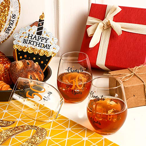 50. Geburtstag stammloses Weinglas, Gold Prost auf 50 Jahre Geburtstag Weinglas Geschenk für Männer Frauen 50. Geburtstagsfeier Hochzeitstag Party Dekorationen, 17 Unzen stemless