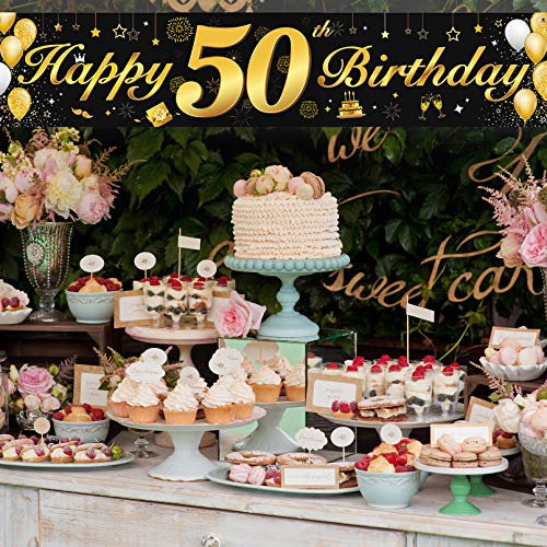 【Fantastische Dekoration zum 50. Geburtstag】 Es handelt sich um eine speziell entworfene Bannerdekoration für die 50. Geburtstagsfeier. Mysterious Black als Basis, Edles Gold als dekoratives Muster. Gedruckt mit Luftballons, Kuchen, Happy 50. Geburtstag und anderen Partyschildern. Voller Vitalität und Spaß, Geeignet für Männer und Frauen.