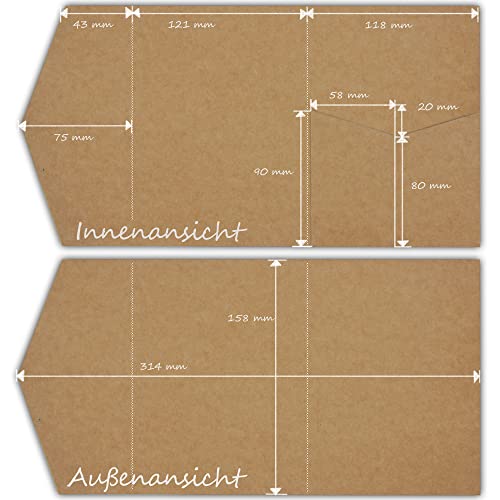Details: 50 Stück Pocketfold Kraftpapier Hochzeitskarte blanko I 121 x 158 mm für DIN B6 Umschlag , 280 g/m² I…