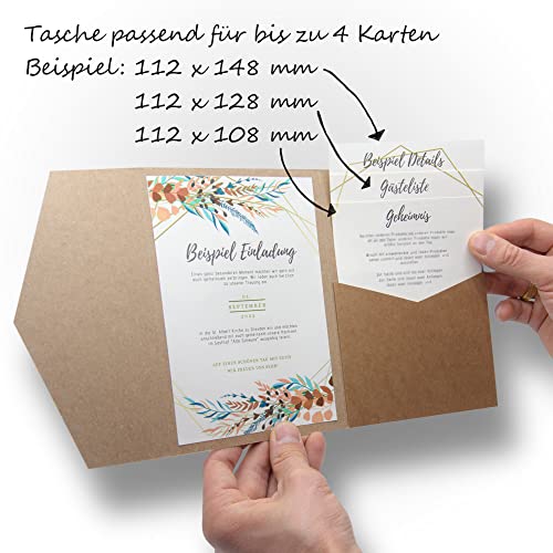 ✅ UNENDLICHE MÖGLICHKEITEN – Ob als Einladungskarten Hochzeit, zur Taufe oder als Dankeskarten. Gestalte mit diesen Kraftpapier Pocketfold Faltkarten, Einladungen im Vintage Stil oder mit feiner Spitze. Lass dich inspirieren
