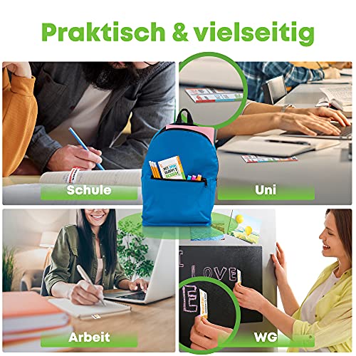 ⭐ PRAKTISCHES FORMAT – Egal ob Büro, Uni, Schule oder Home Office: Das Haftnotiz Set in handlicher zusammenklappbarer Größe von 5 x 10 cm ist ideal zum Mitnehmen und passt in jede Tasche oder Schublade.