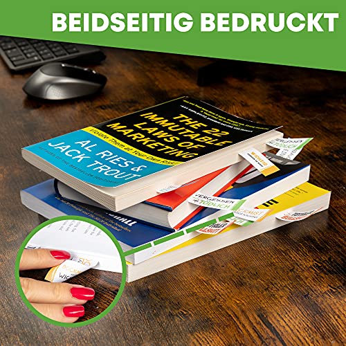 ⭐ CLEVER DURCHDACHT – Die 500 selbstklebenden Haftnotizen (5 x 2 cm) mit lustigen Sprüchen sind auf Vorder- und Rückseite bedruckt und somit für jede Buchseite ideal nutzbar sowie rückstandsfrei ablösbar.
